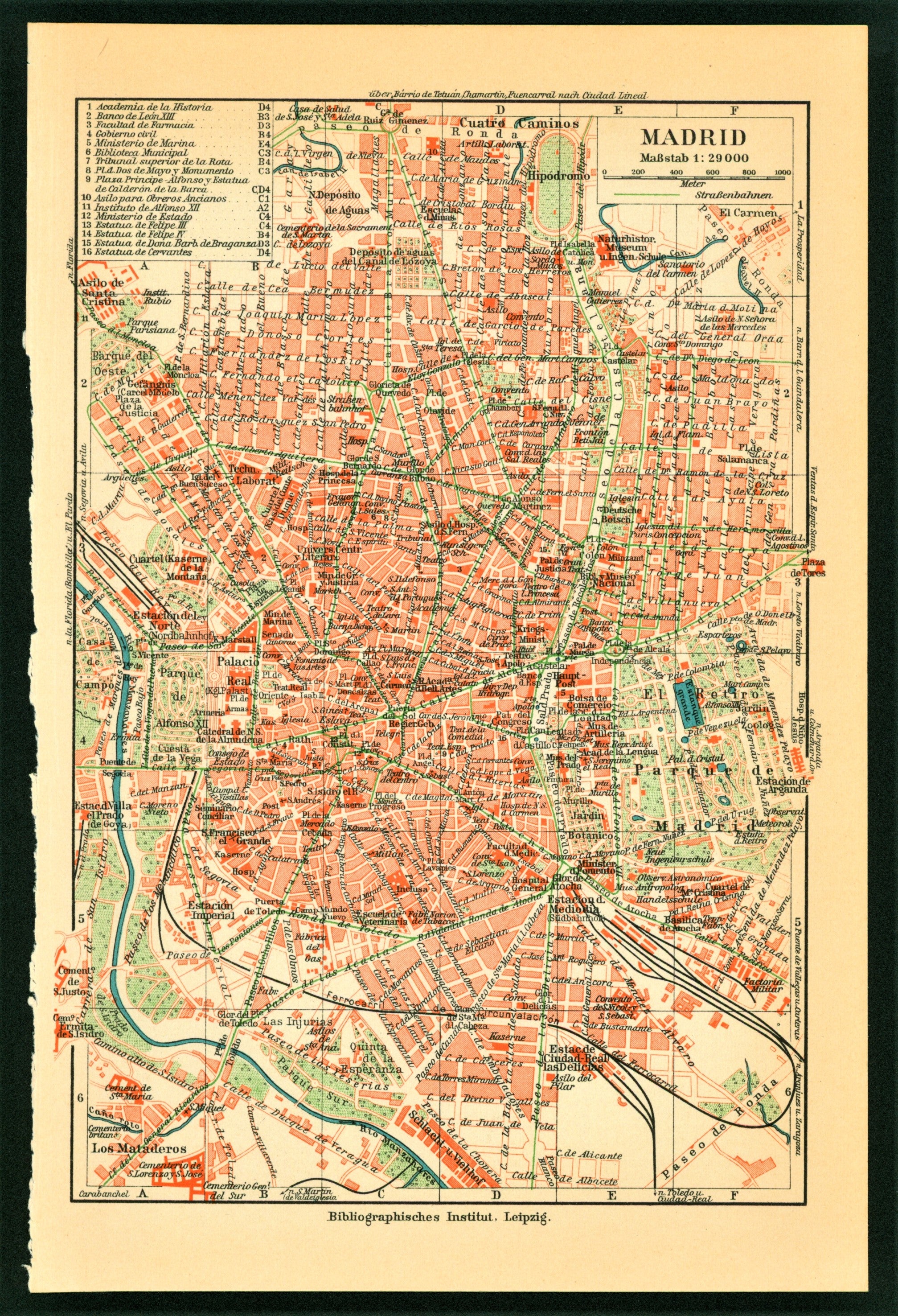 Authentic Vintage Antique Print | Madrid, Spain City Plan Antique Map
